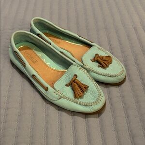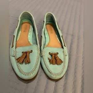 Sperry Top Sider Sabrina Leather Loafers Flats Boat Tassel Turquoise Blue 6.5