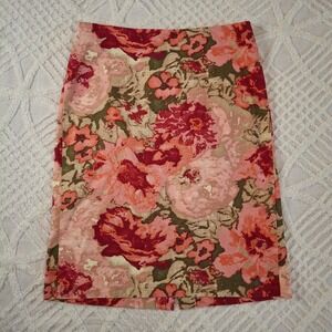 Talbots Petites Pink Red Floral Cotton Pencil Skirt Size 6P