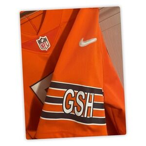 Bright orange home jersey with official NFL shield at collar, stitched Nike swoosh, and sleeve striping with "GSH" detail. Name "MACK" and number 52 on back.