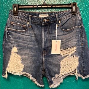 Good American Blue Distressed Jean Shorts