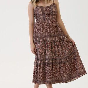 Angie Overdye Tie Strappy Back Tiered Skirt boho Maxi Dress pink mauve Large