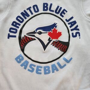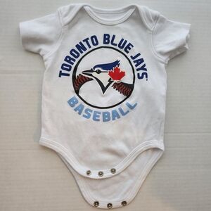 This is an official MLB Toronto Blue Jays onesie for babies sized 0/3M.