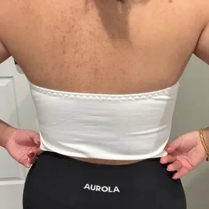 Chic white corset top with purple floral details. Features elegant gold leaf accents. Ideal for stylish occasions.