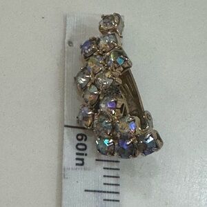 Add a touch of mid-century glamour to your collection with these beautiful vintage Aurora Borealis (AB) rhinestone earrings. These stunning pieces feature a tiered, crescent-style design that catches the light with iridescent flashes of pink, blue, and gold. Perfect for weddings, formal events, or adding a vintage spark to your everyday look!