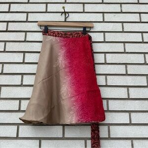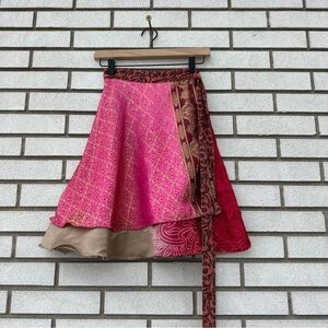 Darn Good Yarn Silk Wrap Mini Skirt Reversible Boho Patchwork Festival Pink 4-12