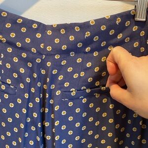 Notes: closes with zipper, button and hooks. Back pockets are faux and do not open. Side pockets open.