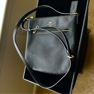 Chic Coach crossbody bag in black. Features a sleek design with a front zipper pocket. Perfect for everyday use. Only used a few times. Like new