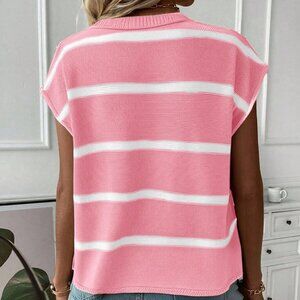 Elevate your spring and fall wardrobe with this casual, loose-fitting knit vest in a vibrant pink hue. Crafted with a comfortable rib-knit fabric, it features a classic round neckline and a relaxed, oversized fit for an effortlessly stylish look.