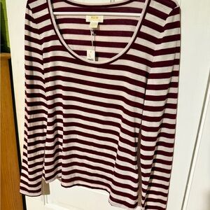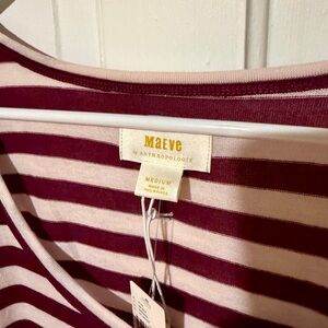Striped Merlot and cream Women's Top. NWT. Maeve by Anthropologie. Size Medium
