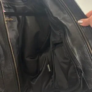 Chaps Black Leather Bomber Jacket