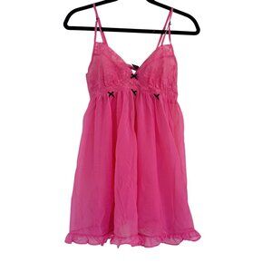 Betsey Johnson Womens Intimates Pink Lace Sheer Ruffled Babydoll Nightie M