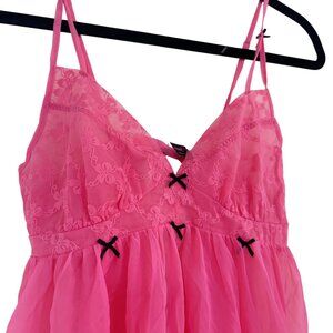 betsey johnson, lingerie, babydoll, chemise, sheer, mesh, lace, y2k, coquette, flirty valentines, boudoir, neon pink, romantic