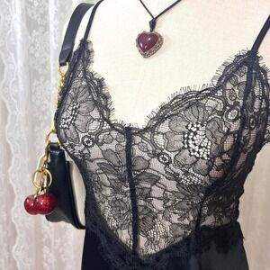 Victoria's Secret Black Lace Slip Dress Lingerie Size Medium Whimsi Goth Dark Fairy