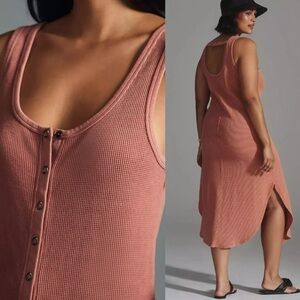 Daily Practice By Anthropologie Waffle Knit Button-Front Midi Dress In Coral XS