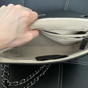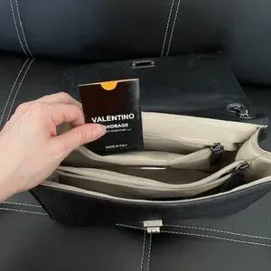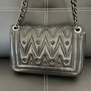 Beautiful Black Leather Quilted Crossbody purse by Mario Valentino. Gently used. One small stain on the inside (picture above) . Authentic logo card included.