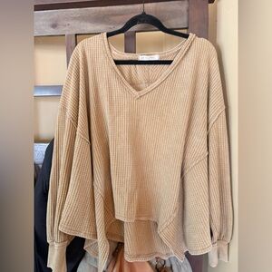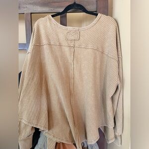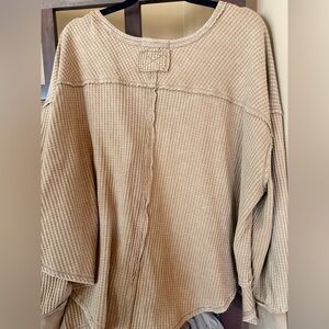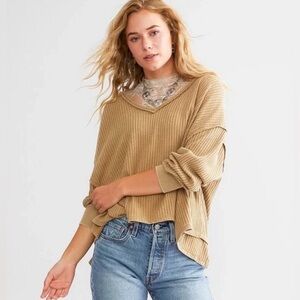 We The Free Coraline Thermal top, a relaxed-fit, waffle-knit sweater featuring a V-neckline and exposed seaming details. Size M in the color khaki/beige. Retails for $68. In excellent condition!