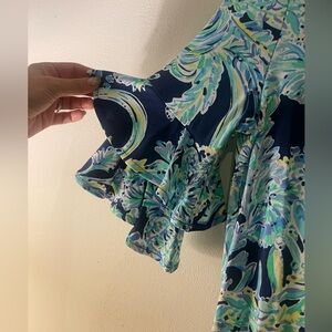 NWT Lilly Pulitzer Ruffled Lula Romper High Tide Scuba Doo Engineered
