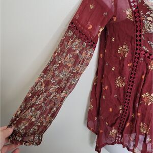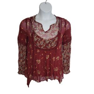 SUNDANCE blouse woodrose floral sheer long sleeve peasant top with cami XS