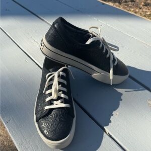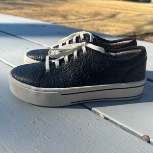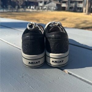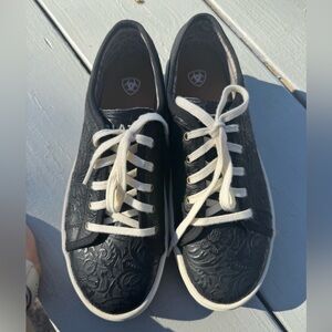 Beautiful Ariat Skylar casual sneakers in black floral embossed leather. These shoes were worn only once and are in excellent condition.