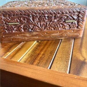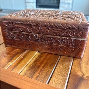 Wood Hand Carved Ornate Trinket Box - India