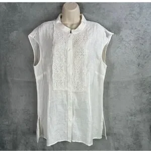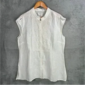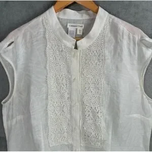 Coldwater Creek Linen Blend Crochet Lace Button Up Blouse XL Cottagecore Boho
