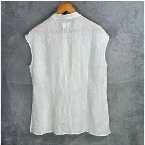 Keywords: Linen Blend, Crochet Lace, Boho, Coastal Grandma, Summer, Breathable, Cottagecore, Minimalist, Classic, Workwear, Casual, Lightweight, White Blouse, Sleeveless Shirt