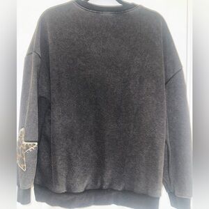 ODDY brand fabric with a textured gray design. Sweatshirt with distressed leopard print star pattern. Ideal for versatile use.