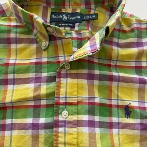 Ralph Lauren Short Sleeve Button Up Plaid Shirt Mens Large Multi Colored Classic