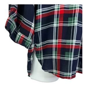 Market & Spruce Women’s M 1/4 Button Front V Neck Plaid Top