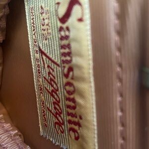 Step back in time with this vintage Samsonite Streamlite vanity case, a true icon of mid-century travel style. Made by Samsonite Shwayder Bros Inc. of Denver, this charming piece features a structured hard shell, two inner elastic pouches (one divided in three, one full-length), and a large interior mirror in excellent condition. Despite minor age wear—including light dings, one loose stitch, and some hardware scratches—this case remains sturdy, functional, and full of vintage character. Perfect for travel, display, or use as a decorative storage box. Includes the original key.