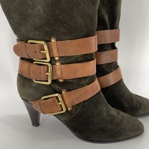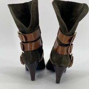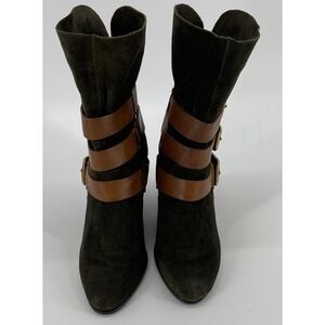 Rebecca Minkoff Dark Olive Green Suede w Buckle Bliss Boots Size 7.5M
