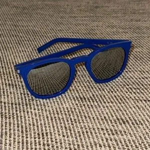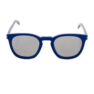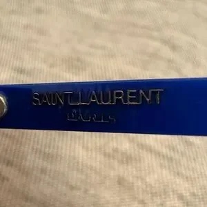 Elegant blue frame with Saint Laurent branding. Sleek and modern design.