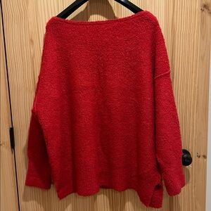 Oversized red chunky sweater by Free People. Great pre owned condition. Size is medium but it is a generous XL. Approximate measurements: chest 29”, shoulder to hem 30”.