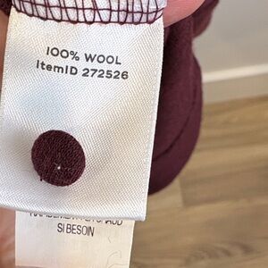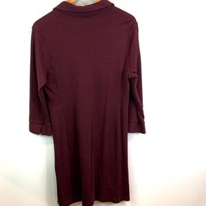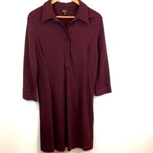 burgundy dress with a classic collar and button details. Perfect for any occasion. 100% wool. Lightweight. Size 14p. When laying flat Pit to pit 20”, length 38”. In excellent condition