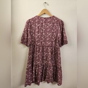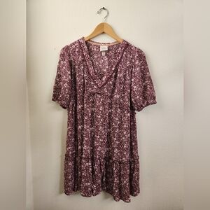 Knox Rose V-Neck Mini Dress Tunic Babydoll Floral Print Purple Medium