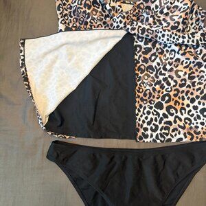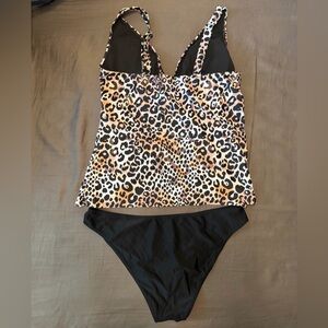 Two piece leopard print swim suit. Bikini bottoms have never been worn. Top has removable cups. No snagging on the suit.
