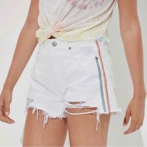 American Eagle Hi-Rise Festival White Distressed Jean Shorts Rainbow AE Pride