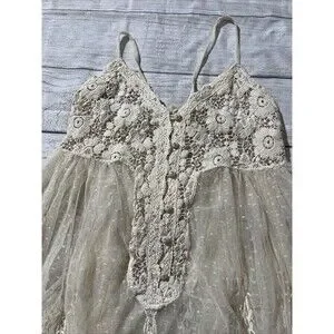 Rare Vintage Free People Say Hello to Heaven Lace Dots Crochet Slip Dress XS