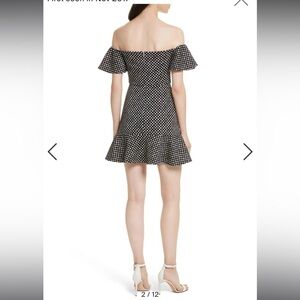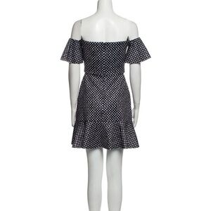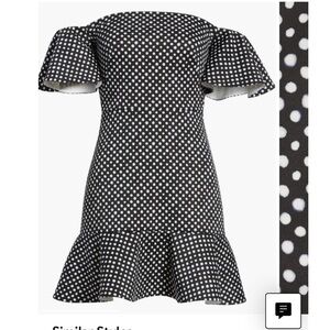 Stun in this chic off-the-shoulder dress with ruffle trim and allover polka-dot pattern, with short ruffle sleeves, concealed back zip close and it’s completely lined. What makes this dress so good is the material- its a neoprene, thick ( not too heavy) material, making it easily one of the most flattering dresses! It skims the body and you will not only love the material but the fit is amazing! This dress is Saloni, made of the highest quality and you can grab this fun, staple for an amazing deal! Material: Outer; 93% Polyester 3% Spandex and the lining; 98% Polyester 2% Spandex! This dress is NWOT and has no flaws! ❤️