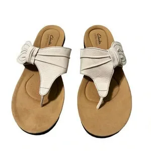 Clarks sandals, leather thong sandal, comfort footwear, white flip flop, summer shoes, resort casual, cushioned footbed, wide fit