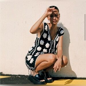 New!Tach Cassia Nazarene Black & White Granny Square Crochet Vest & Skirt Set🖤XS