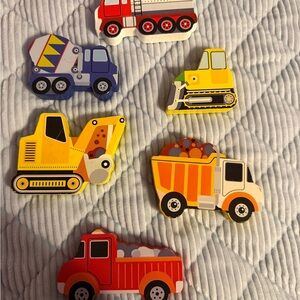 The Melissa & Doug Fresh Start Construction Wooden Chunky Puzzle Set is a hands-on learning toy designed for children ages 2 and up. Made of durable wood, this puzzle set features colorful vehicles from a character family, perfect for young preschoolers who love imaginative play. With large chunky pieces, it is easy for little hands to handle and arrange, promoting problem-solving skills and hand-eye coordination in a fun and engaging way. Ideal for sensory development and early learning, this toy is a great addition to any young child's playtime.