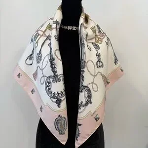 Authentic Hermes Pink and Gold Silk Scarf