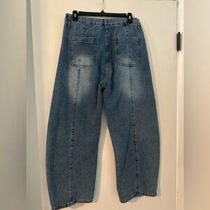 Stylish barrel leg Jean. I’m guessing they were a purchase from Amazon. I got them at the thrift store.