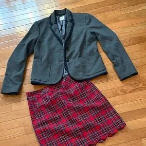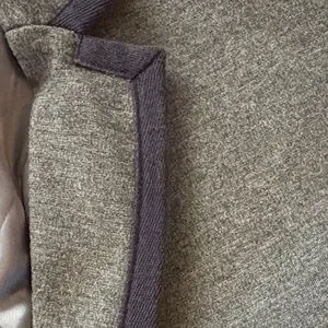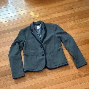 Stylish GAP blazer. Gray fabric with black trim. Two-button closure. Perfect for formal occasions.