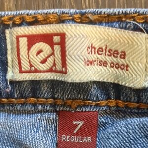 Stylish Chelsea low-rise flare girls size 7 jeans by LEI. Comfortable fit with a classic blue wash. Perfect stylish wear.