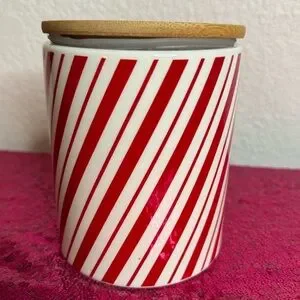 2/for $20 🪩 Peppermint, Candy Cane Striped Ceramic Cookie Jar, Wooden Lid