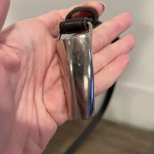90's Chic Shiny Silver Abstract Hook Buckle Skinny Black Belt Size 16 Adjust