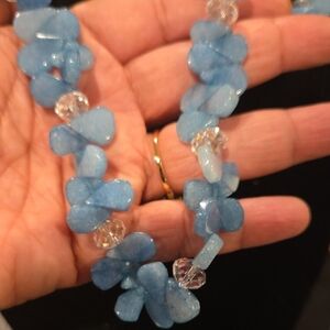 Elegant Blue Glass And Stone Beaded Necklace 24 Inches
