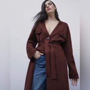 Zara knit brown coat oversized no belt included size S